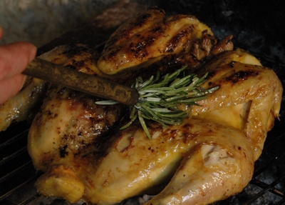 On Mondays dinner is simple. It depends on what the fridge and vegetable basket deliver. Tonight will see a tomato salad and turkey breast on the menu. And since it is Monday, we’ll pass on the glass of wine and start off with a glass of Perrier and of course…an apron.