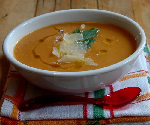 - If you don’t like thick soups, try the following recipe where nothing is blended: Red lentil, carrot and pancetta soup… just add the red pepper and leave out the carrot or play around with the recipe.