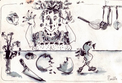 ” ‘Her granddaughter of five was visiting for the weekend, a real cutie she is, and asked Grandma for a boiled egg for lunch. While waiting for the water to come to boil, Aunt Betty put the egg, taken from the fridge door, into the pocket of her skirt, to get the edge off the cold egg. Then the telephone rang and now you also know that Aunt Betty does enjoy a telephone! After a final third goodbye to her good friend, sorting out their dates for their antique shopping and luncheon afterwards, she needed to drop in at the bathroom…..all those many cups of Earl grey she believes in drinking every day…..and right there is where disaster struck your elegant aunt and her precious raw egg, hidden and forgotten in her pocket!’