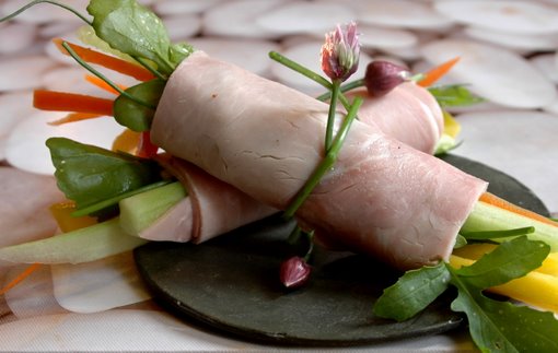 - Top with the shredded serrano ham, flavour with salt and pepper and drizzle with olive oil.