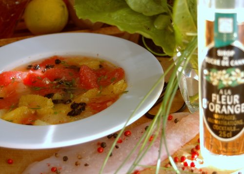 - the orange flower water enhances the salad and it is a good idea to have it in your pantry as a few drops enhances many a dish. To harmonize with the citrus and orange flower flavour, the addition of a citrus honey would be perfect, but a flower honey is nice too, which is what I used. Try not to use acacia, since it competes with the orange flower water.