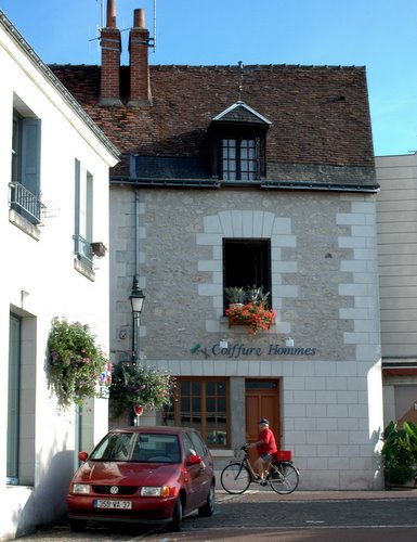 Turning at this bunch of grapes takes you up a steep hill to la centre ville, where cars play second fiddle to walking and cycling, shopping and chatting.