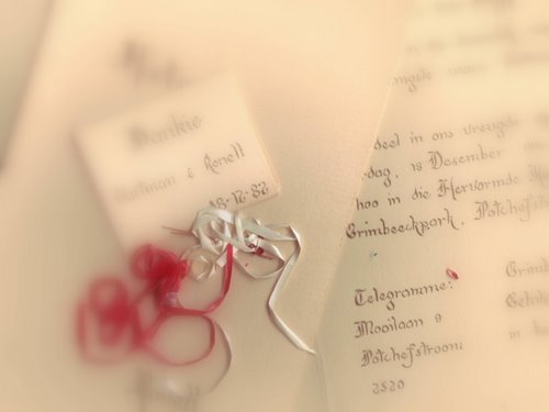 Ronelle ~ what wonderful, touching post! I love stories like this …as weddings are my ‘business’. You will never forget those unique touches. So much more meaningful. Your invitations are so elegant. …and the dress! Wow, you really can do it all! I hope it will be worn for generations to come.