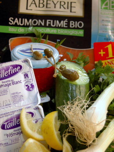 Don’t forget the salty fillings; smoked salmon, drizzled with lemon juice and mixed with capers and some chopped spring onions or chioves, parsley or dill, and served with a greek tzatziki made from fromage blanc, lemon juice and cucumber and finshed off with a sprinkling of lump eggs.