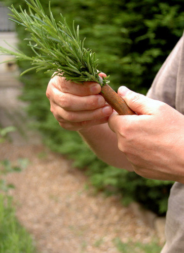 - I took a handful of leaves from my herb garden ; rocket, basil, red and green sorrel, chives, and a mixture of salad leaves.Mix with some cleaned and steamed green string beans, butter beans, petit pois, and shelled fava beans. Add quickly fried calamari or shrimp or any other white meat of your choice, make a vinaigrette and serve with a country bread.