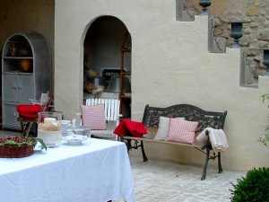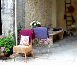 Early mornings begin with joghurt. Healthy chicken food the rest of the day and a gouter(snack) late afternoon is their favorite joghurt again, some grated coconut and a few shreds of salami…yeah yeah…I know… chickens know nothing about joghurt and coconut…, but then I also think these two chickens don’t know they are chickens!