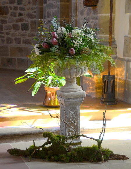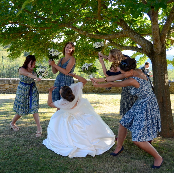 Both the bride and groom wanted a traditional wedding, from the word go. The challenge was to incorporate the traditions of three different cultures. As time passed and planning was done step by step(mostly by themselves), it all naturally fell into place. The finished result was a good and fun mix of 3 cultures and even the hands that helped stretched over continents; friends and family from SA to Australia, friends and family from the UK and of courseall those good friends from France. Everyboldy pitched in happily… preparing salds for the Friday evening’s barbecue, roaming the forest for ferns and moss and branches, loading and unloading tables and chairs and pots and urns, stripping leaves from ferns for confetti, arranging flowers, setting tables, folding napkins, sweeping floors, making coffees, taxying people from the airport…and finally we all sat down together for dinner in a candle lit room, surrounded by happy chat and laughter. This is exactly how I wanted their day to end. Happy.