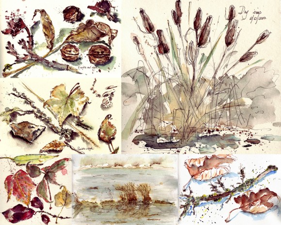 ..this is a time of year I love to sketch. At the moment, I am truly inspired by the browns and the shapes, especially those of leaves, branches and everything else I find on my walks..