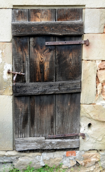 ..an old dilapidated, but charming door contrast beautifully with white stone walls..