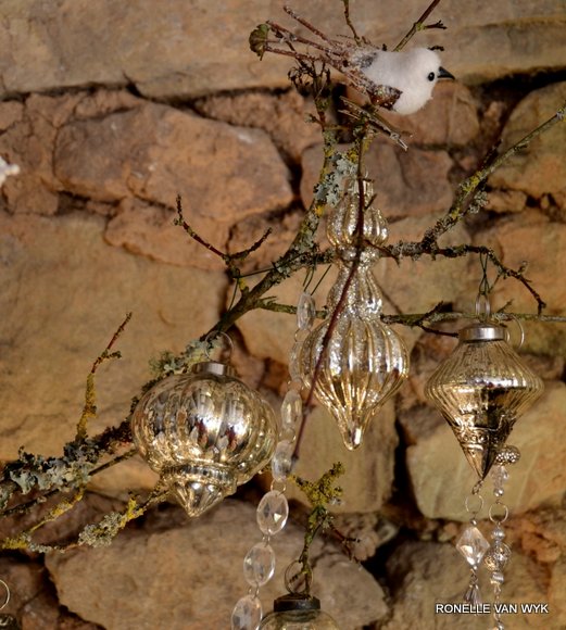 And so, our Christmas this year is all in white and silver, my favorite colours for the festive season. the dry branch with moss from the garden, a pot filled with sand, candles and tea lights we burn every night for those gone, far away or just simply those we love.