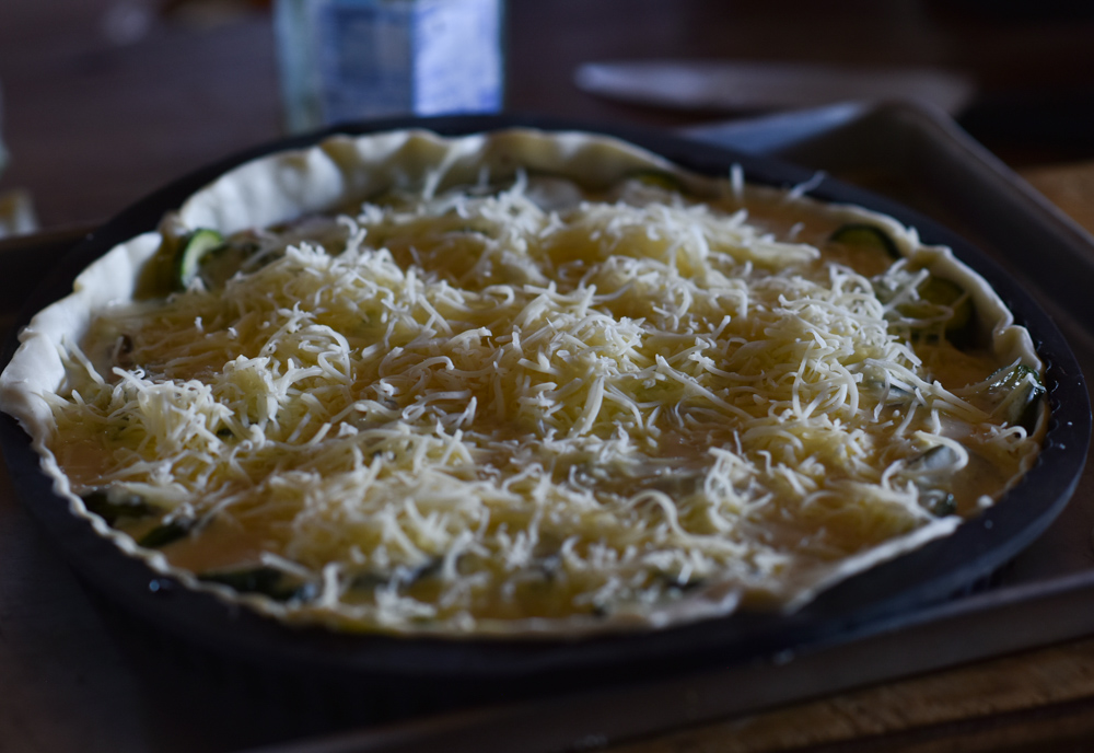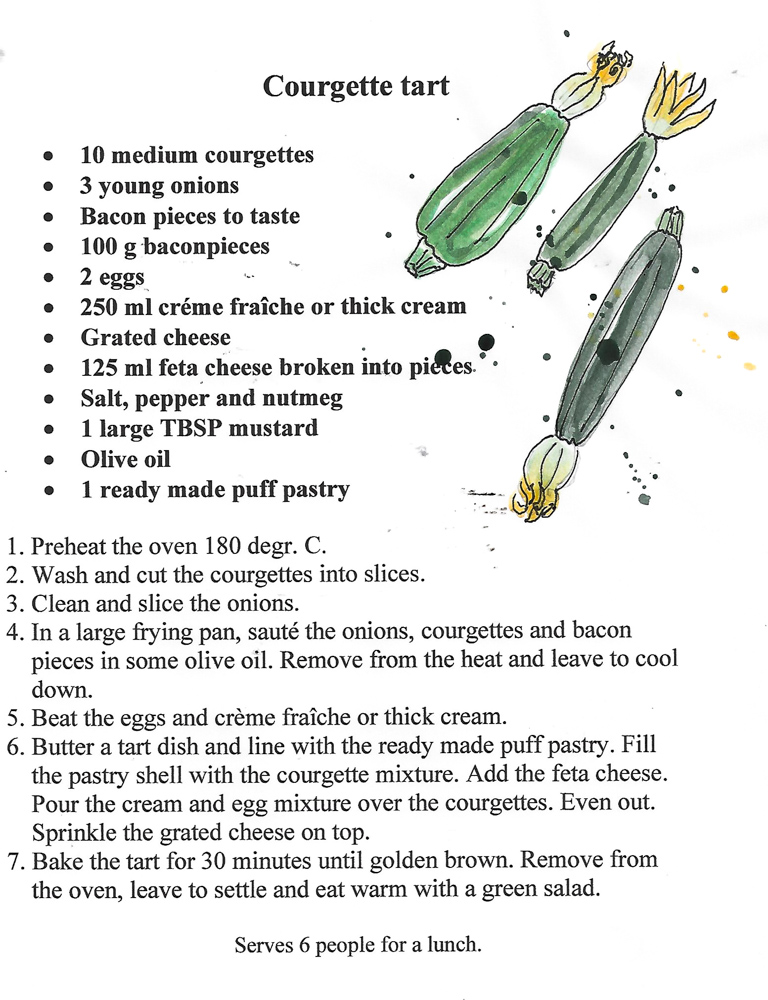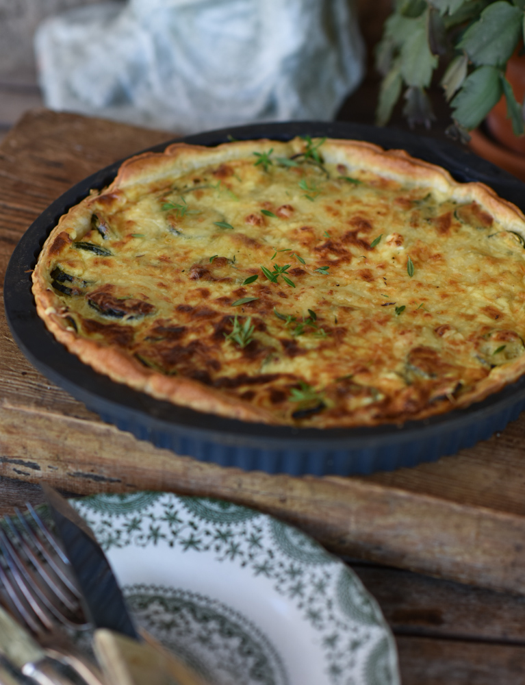 The courgettes are overflowing in the potager and we eat it every way we can, this time around as a courgette tart. I love salty tarts and this tart is right up my alley. I always have puff pastry in my freezer, so while the puff pastry defrosts, I make the preparation and the tart is assembled as soon as the courgettes have cooled down. It is really a no-fuss tart and it can be adapted to suit every taste. I hope you like it enough to try it.