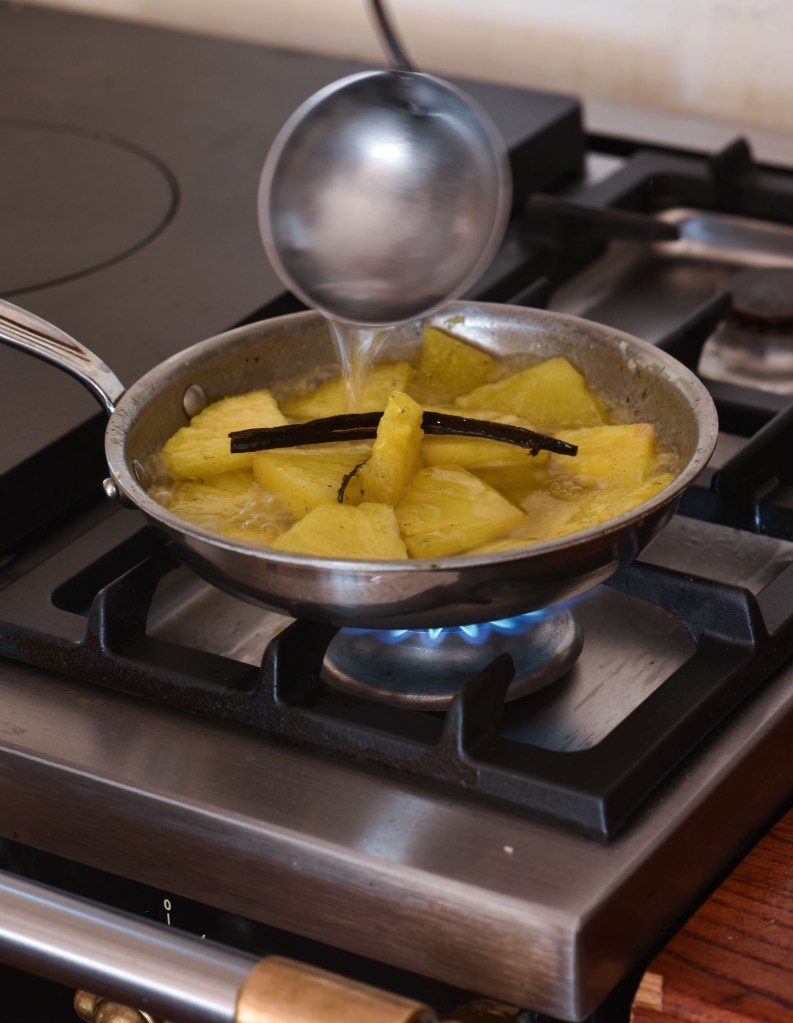 - Tplace the spices with a vanilla pod, seeds scraped out and pod and seeds addd to the quince.