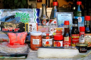 *Asian ingredients: Soja, sauce, mirrin, rice vinegar, sushi rice, teriyaki sauce, nuoc nem, combo, miso, wasabi, ginger, imperial suce, nori, rice noodles…