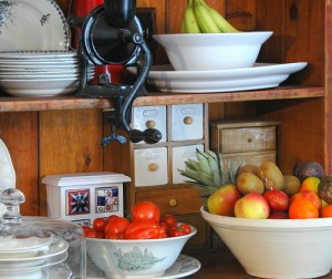 On my pantry door I also try to inspire myself creatively by making notes, leaving myself messages (and anyone who takes a peek), making lists of ingredients that need refilling, drawing/writing recipes and inspiring pictures of fruit and veggies, sticking restaurant notes and found recipes onto a notice board…anything that inspires my 5 senses….as well as the 6th one! It works for me – to keep my interest in my pantry and its content alive.
