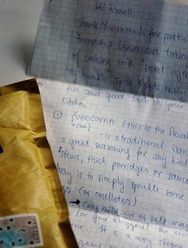 I have received a parcel from Zlamushka at Zlamushka’s spicy kitchen QUITE a while back. I unfortunately broke the chain, due to circumstances. I have kept her parcel and at the time, had them all vacume packed and stored in a cool, dark place. At first I thought to completely let it go because this is SUCH a late response, but it rests on my conscience and then I finally decided to do a post anyway, even though it is way beyond too late!