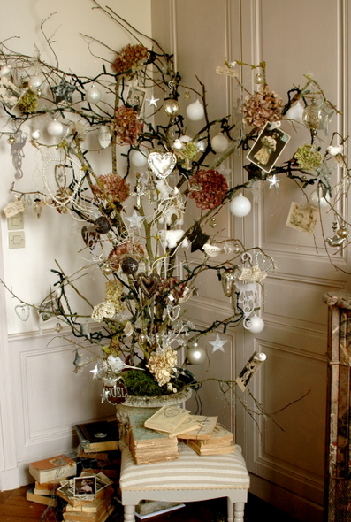 This tree is my all time favorite tree..I loved this year’s tree! Fresh moss from my garden in Montlouis, the tree from the Loire, the dry hydrangeas were directly from the garden too..and books, books, books!
